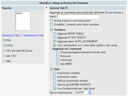Grazie a PhpMyAdmin anche questa operazione diviene molto semplice. Basta cliccare sul frame di sinistra sul nome del DB di cui fare una copia di sicurezza, dopodichè verrà caricata una nuova pagina nel frame principale. A questo punto cliccate su: