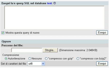 In caso di malfunzionamenti può essere necessario dover ripristinare i dati da backup. Per fare questo basterà, dopo aver selezionato il DB in cui effettuare il ripristino, cliccare sul: