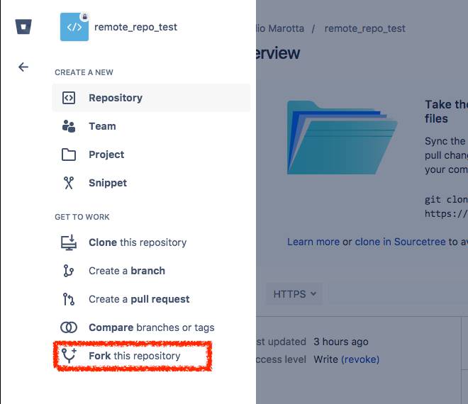 Esempio che mostra come creare e usare un repository remoto su Bitbucket.