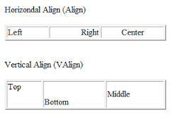 Vediamo, attraverso una semplice immagine, l’effetto degli attributi align e valign applicati alle celle di una tabella: