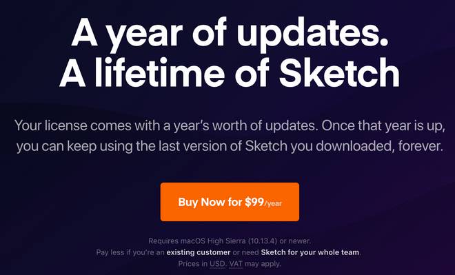 È comunque opportuno fare un po’ di chiarezza sui costi della licenza. Fino alla versione 43 di Sketch, il costo della licenza era pari a 99 dollari da pagare una tantum. Bohemian Coding ha successivamente deciso di modificare le condizioni della licenza. Per lo stesso prezzo si ottiene ora una nuova licenza che include un anno di Sketch Cloud, il servizio ufficiale per il salvataggio sui server della compagnia dei file che possono essere condivisi con colleghi e clienti semplificando in questo modo il lavoro in team. La licenza garantisce anche degli aggiornamenti per 12 mesi dalla data di acquisto, al termine dei quali potremo continuare ad utilizzare senza limitazioni l’ultima versione a cui abbiamo avuto accesso. Non sarà però possibile caricare nuovi documenti su Sketch Cloud, ma potremo continuare ad accedere al nostro account per visualizzare, commentare e scaricare i documenti caricati in precedenza i quali rimarranno disponibili finché non decideremo di rimuoverli.