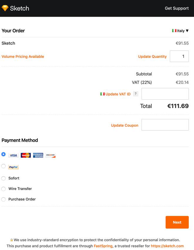In ogni caso, il costo della licenza personale è pari a $99 all’anno. (Il costo della licenza richiede dei chiarimenti su cui ci soffermeremo fra un po’) In Italia dovremo però aggiungere l’IVA al 22%.