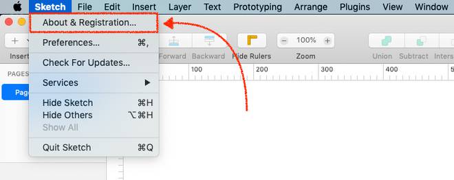 Se nella finestra di lancio clicchiamo su ‘New Document’, verrà aperta una nuova finestra di lavoro di Sketch che descriveremo in dettaglio a partire dalla prossima lezione. Se invece selezioniamo ‘Sketch > About&Registration‘ dalla barra dei menu, otteniamo le informazioni sulllo stato corrente del periodo di prova incluso il numero di giorni che manca prima della scadenza.