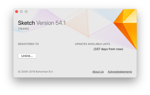 Se al contrario registriamo una nuova licenza, visualizzeremo tutti i dettagli e avremo la possibilità di disattivare la licenza dal computer corrente utilizzando il pulsante ‘Unlink…’. Tale operazione può risultare utile quando vogliamo attivare Sketch su un nuovo dispositivo.