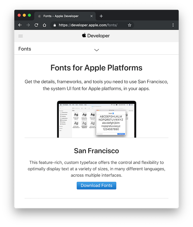 Infine è necessario scaricare gratuitamente dal sito della Apple il carattere tipografico San Francisco che dovremo poi aggiungere alla nostra collezione presente nell’applicazione di sistema Font Book.