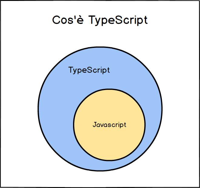 Come vedremo, i file TypeScript hanno solitamente estensione .ts (.tsx nel caso si voglia usare JSX nel file). Se all’interno di uno di questi file inseriamo del semplice codice Javascript, il compilatore TypeScript non segnalerà nessun errore in quanto il codice Javascript è codice TypeScript.