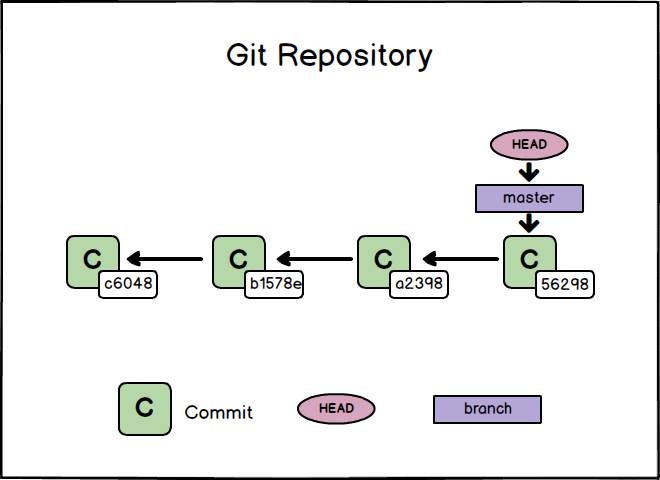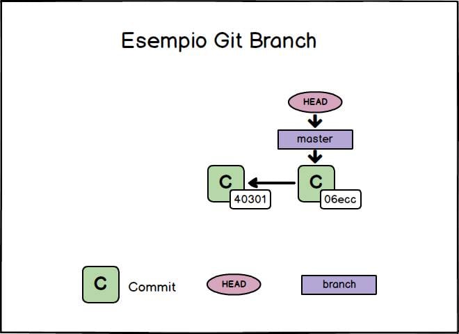 Al contrario dei tag che sono delle etichette fisse, man mano che creiamo un nuovo commit, il branch corrente si sposta e punta al nuovo commit creato. Git usa il puntatore speciale HEAD per capire qual è il branch corrente. In condizioni normali, HEAD contiene un riferimento al branch corrente. Quando creiamo un nuovo repository, Git crea in automatico il branch di default che prende il nome di master.