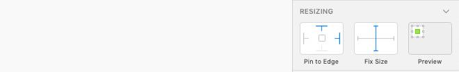 Il quadro per imporre tali vincoli è diviso in tre sezioni: la prima a sinistra permette di stabilire se e a quale lato del contenitore deve essere ancorato un livello. Al centro troviamo il rettangolo Fix Size per decidere se un livello deve essere allungato/allargato o se la sua larghezza e/o altezza devono restare inveriate. Infine sulla destra viene mostrata un’anteprima di come si comporterà il livello, che è rappresentato da un rettangolo verde, quando l’artboard o il gruppo a cui appartiene vengono ridimensionati.