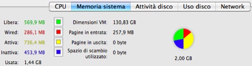- Inattiva: indica la memoria che precedentemente era occupata da alcuni processi che adesso sono stati chiusi. Questa memoria risulta comunque a disposizione per eventuali altre applicazioni in esecuzione.