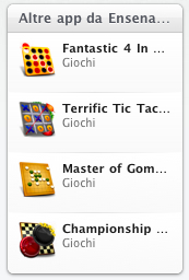 Questo box è estremamente utile in quanto permette, in maniera molto rapida, di tenere sott’occhio le applicazioni dello sviluppatore trovando rapidamente delle applicazioni, dello stesso genere di quella che stiamo scaricando, che ci potrebbero interessare. In questo caso, se siamo degli appassionati dei giochi classici, leggendo il box dello sviluppatore vedremo che è disponibile anche il gioco del tris che potremo decidere di acquistare.