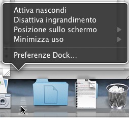 - Attiva nascondi: se cliccate su quella voce automaticamente la dock scomparirà dalla parte bassa dello schermo come se fosse stata rimossa. Se vi avvicinerete, con il cursore, alla parte bassa dello schermo la dock ricomparirà per poi scomparire nuovamente quando vi allontanerete con il cursore.