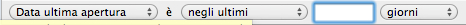 A seconda della voce del menù che andrete a selezionare cambierà contestualmente il valore da inserire. Per esempio se selezioniamo la voce Data di ultima apertura la barra di ricerca muterà come nello screenshot seguente: