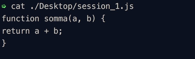 Dopo aver digitato il comando dell’immagine in alto, verrà creato sul Desktop un file session_1.js contenente tutte le istruzioni digitate durante la sessione.