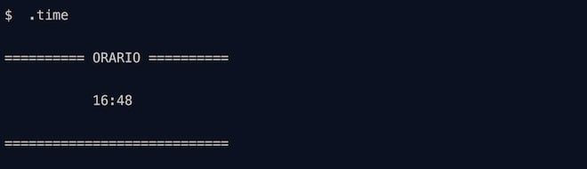 Infine abbiamo aggiunto un nuovo comando (‘.time’) che una volta eseguito mostrerà l’ora corrente.