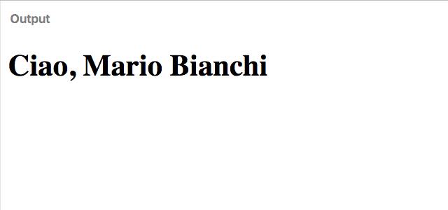 ReactDOM.render(<Hello nome="Mario" cognome="Bianchi" />, rootNode);