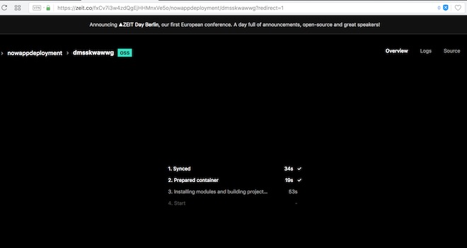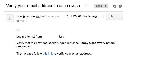 Cliccando sul link che abbiamo ricevuto via mail, verrà completata la procedura di login. (Possiamo anche eseguire l’accesso al nostro profilo sul sito Zeit.co ma dovremo ovviamente ripetere una procedura simile a quella appena effettuata) Ora possiamo finalmente pubblicare la nostra applicazione.
