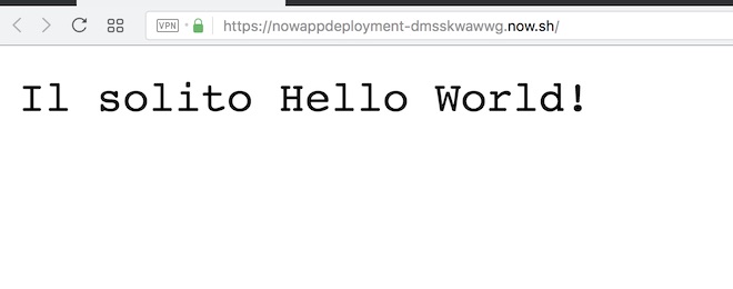 A processo completato potremo visualizzare la nostra applicazione all’indirizzo che è stato generato. È importante sottolineare che viene creato un indirizzo diverso ogni volta che eseguiamo il comando now. In questo modo avremo a disposizione diverse versioni della nostra applicazione.