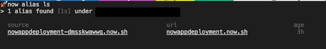 Possiamo altresì creare un alias per una versione dell’applicazione. Dal momento che stiamo usando la versione gratuita, potremo solo creare un’alias per il dominio di secondo livello ma continueremo a usare il dominio now.sh. A partire dal piano hosting Premium in su, possiamo registrare un nuovo dominio di primo livello e associarlo alla versione dell’applicazione che preferiamo in modo analogo a quello che vedremo in questa lezione. Bisognerà solo controllare e eventualmente modificare le configurazioni dei record DNS nel pannello di controllo del sito della compagnia da cui abbiamo comprato il dominio stesso. (Zeit permette di comprare un dominio direttamente da linea di comando. In questo modo possiamo saltare il passaggio aggiuntivo della configurazione dei record DNS).