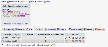 Facciamo un esempio: poniamo di voler creare una tabella chiamata "amici" composta da "2" campi.