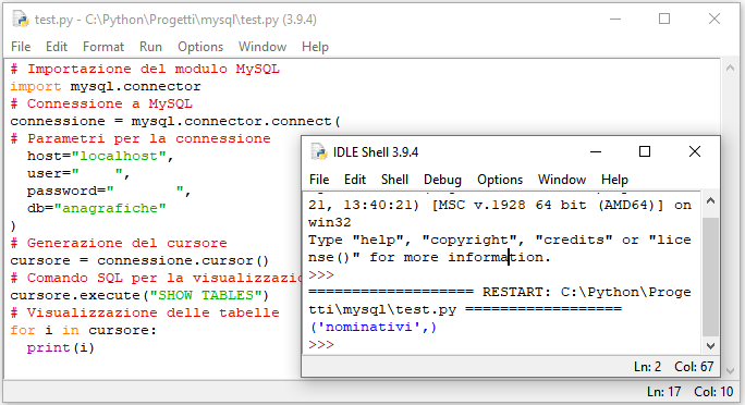 # Importazione del modulo MySQL