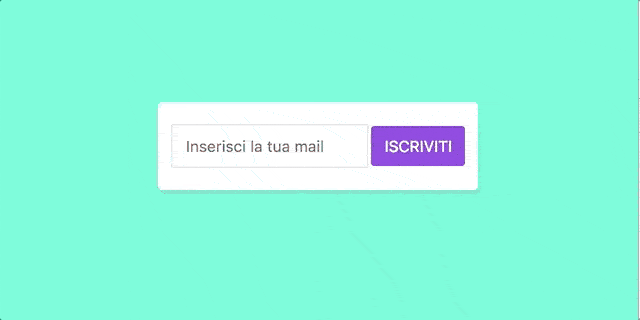 Abbiamo creato un componente Form. Ogni volta che viene premuto il pulsante ‘Iscriviti’, viene verificato che il campo di input non sia vuoto. In caso contrario viene applicata la classe invalid al form e viene avviata una piccola animazione che abbiamo definito all’interno del file Form.css con il nome shake.