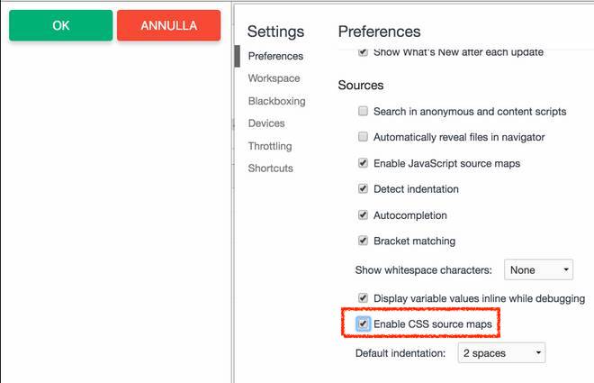 In browser come Google Chrome si può abilitare il supporto alle source map all’interno delle opzioni degli strumenti per sviluppatori.