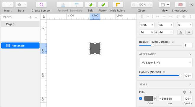 Se invece lasciamo intatto il simbolo master appena generato, il livello Rectangle, a partire dal quale abbiamo creato il simbolo, viene immediatamente sostituito da un’istanza del simbolo stesso. Quando selezioniamo quest’ultimo, Sketch attiva automaticamente nell’Inspector una nuova sezione Symbol che è simile a quella degli stili di livelli.