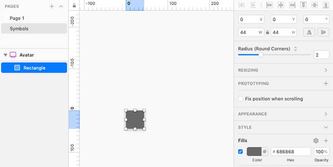 Tutte le modifiche dovranno invece essere eseguite sul simbolo master. Se per esempio cambiamo il raggio di arrotondamento degli angoli o il colore del rettangolo del simbolo master presente nella pagina Symbols, le istanze presenti nelle altre pagine del documento saranno automaticamente aggiornate per riflettere le modifiche apportate.