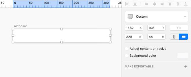 Nella prima pagina andiamo ad inserire una nuova artboard nell’area di lavoro. Premiamo quindi il tasto ‘A’ e disegniamo un rettangolo nell’area di lavoro. Non importa essere precisi perché apportiamo le modifiche manualmente nell’Inspector in modo da ottenere un’artboard di dimensioni 328×44.
