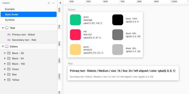 Prima di procedere con le altre modifiche e per prepararci all’argomento che affronteremo nel prossimo paragrafo sulla sostituzione dei simboli, creiamo una nuova pagina ‘Style Guide’ con delle semplici informazioni sui colori e la tipografia usata nel documento.