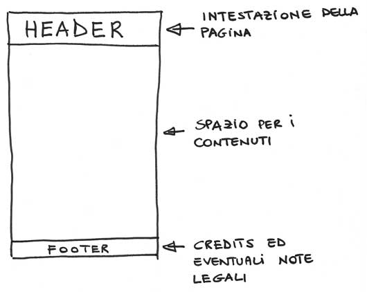 - Header: è la porzione superiore della pagina ed è destinata ad ospitare il logo del sito ed, eventualmente, pochi altri elementi di primo piano;