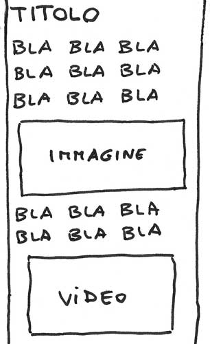 Anche per i contenuti, quindi, suggerisco una impaginazione a cascata dove i vari elementi (testo, immagini, video) si susseguono uno sotto all’altro: