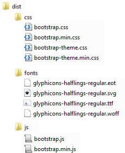 Dal download otterrete un pacchetto .zip bootstrap-3.0.0.zip, oppure se lo scaricate dalla pagina Getting started, otterrete il file bootstrap-3.0.0-dist.zip.
