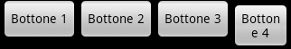 Andiamo adesso ad inserire un quarto bottone (si lascia per esercizio al lettore la scrittura del codice) al layout e come possiamo vedere dallo screenshot seguente il ridimensionamento deforma il bottone, mostrando un’interfaccia non molto omogenea: