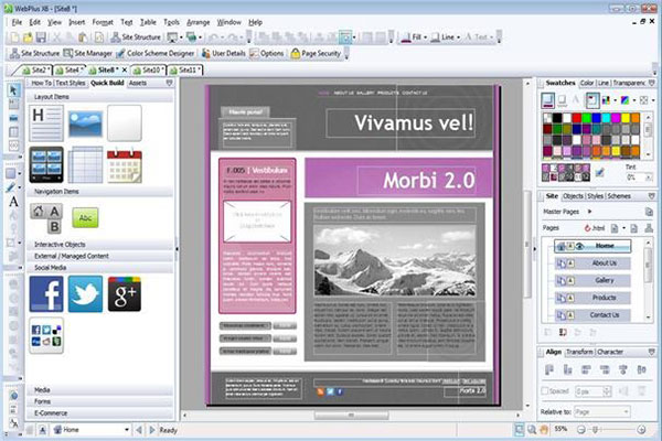 E’ uno dei concorrenti di Dreamweaver che ha il grosso vantaggio di costare molto meno. Questo software di Serif è una delle tante soluzioni alternative al software di casa Adobe dui cui condivide numerose funzionalità. Tra le caratteristiche più interessanti di WebPlus segnaliamo: editor WYSIWYG, template royalty-free integrati, moduli per la creazione di mappe e gallerie, possibilità di stilizzare i form in modo semplificato, sistema di pubblicazione FTP integrato e molto altro ancora.