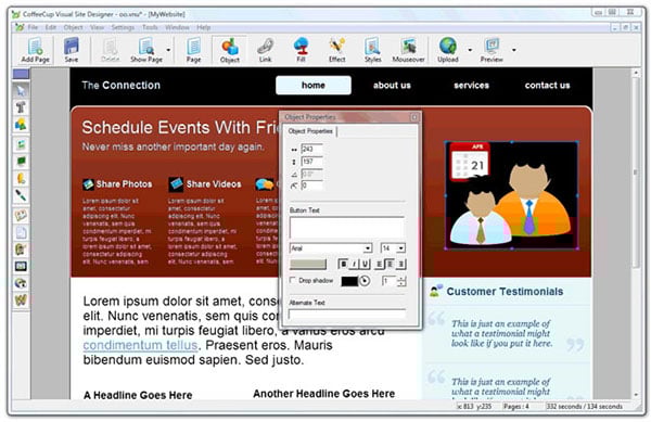 Si tratta di un editor interamente ed unicamente WYSIWYG, quindi non è stato progettato per scrivere direttamente codice HTML ma solo per un utilizzo visuale. Integra diverse features interessanti come, ad esempio, la possibilità di avviare un lavoro partendo da tempi "precotti" o creare "al volo" elementi decorativi come bottoni e banner. Integra un client FTP per semplificare al massimo le procedure di pubblicazione.