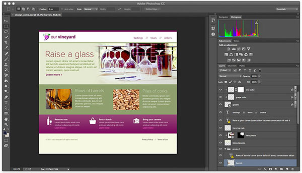 Grazie a Photoshop sarà possibile disegnare bozze di layout o singoli elemnti grafici, loghi o altro materiale decorativo. La sua conoscenza è un requisito non secondario per chiunque desideri fare il lavoro di Web Designer e/o essere inserito nel team di sviluppo di una Web Agency.