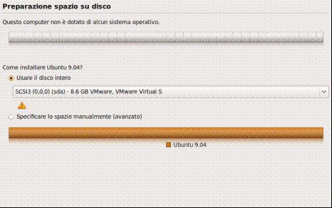 L’immagine qui sotto è riferita ad una condizione particolare, cioè il caso in cui Ubuntu viene installato come "macchina virtuale" con il software di virtualizzazione VMware: