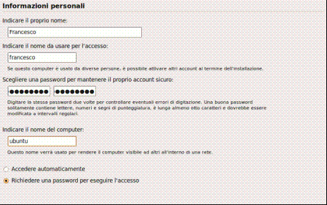 Procediamo con l’installazione e compiliamo i campi della schermata "Informazioni personali" come nella figura di esempio: