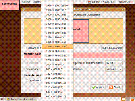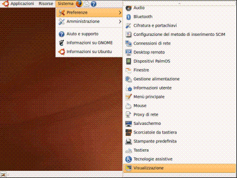 Una delle prime operazioni da fare può essere l’impostazione della risoluzione desiderata, qualora si intenda modificarla. Per fare ciò è necessario cliccare sul menù "Sistema", "Preferenze" e "Visualizzazione" apportando le modifiche desiderate come visualizzato nelle figure seguenti: