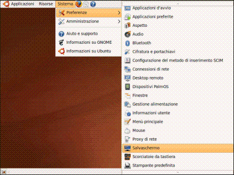 Un’altra impostazione interessante in tema di personalizzazione grafica del desktop è offerta dalla possibilità di aggiungere un salvaschermo. Per impostare o modificare il salvaschermo selezioniamo dal menu il percorso "Sistema", "Preferenze" e "Salvaschermo":