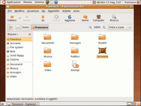 Nella directory "home" troviamo la directory personale dell’utente con alcune sottodirectory come "documenti", "immagini", "scrivania" (quello che in Windows viene chiamato "desktop"):