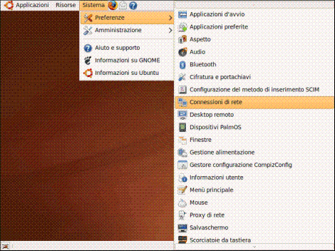 Selezioniamo il menù "Sistema", "Preferenze" e "Connessioni di rete":