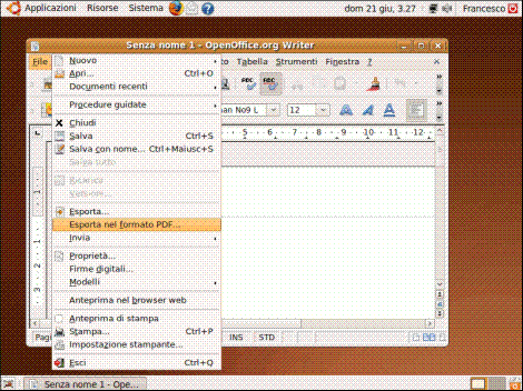 Con il word processor è possibile salvare i documenti in formato PDF dal menù "File", "Esporta nel formato PDF":