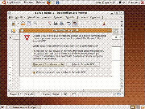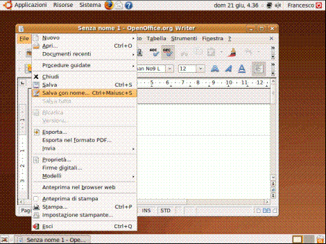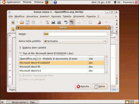 Un’altra funzionalità interessante del word processor è quella che permette di salvare i file nel formato .doc di Microsoft Word in modo da rendere interoperabili le due applicazioni. Dopo aver scritto un documento, selezioniamo il menù "File", "Salva con nome":