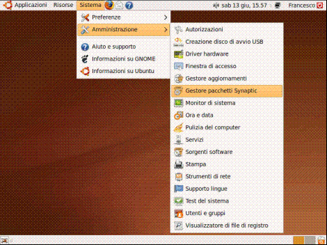 Per averne accesso selezioniamo "Sistema", "Amministrazione" e "Gestore pacchetti Synaptic":