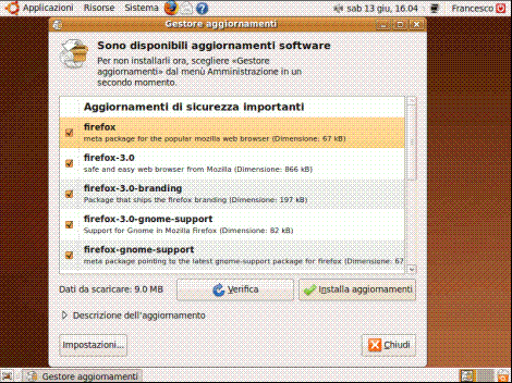 In questo caso vediamo che sono presenti numerosi aggiornamenti: