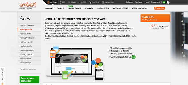 Vediamo di seguito i punti di forza dell’offerta di Aruba dedicata a Joomla: