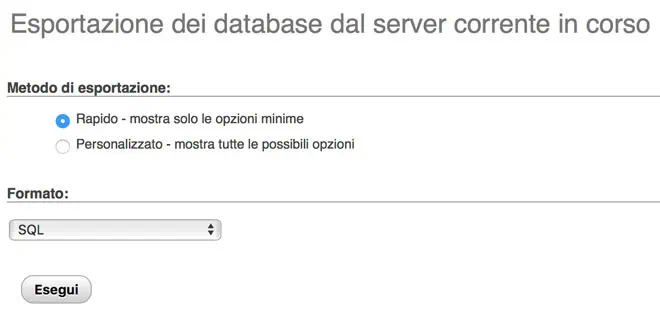 Una volta fatto clicchiamo sul pulsante “Export” per salvare il dump del database pronto all’uso.