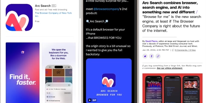 Browser for me è probabilmente la funzionalità più importante di Arc Search, un nuovo browser per il sistema operativo mobile iOS che sfrutta l’Intelligenza Artificiale per ricercare informazioni su Internet per conto del suo utilizzatore. Creata dalla The Browser Company, l’applicazione è già disponibile per il download tramite l’App Store ed è gratuita.
